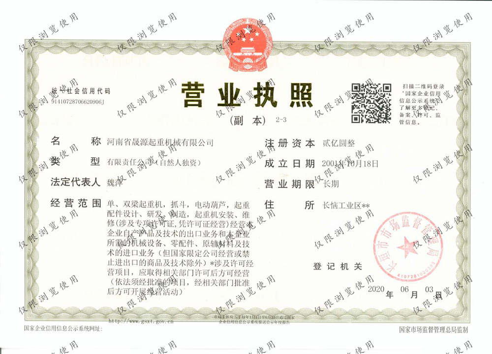 河南省晟源起重機械有限公司成立于2001年,注冊資金20000萬元,公司占地130000平方米,固定資產38000萬元,是一家集起重機械、設計、制造、銷售、安裝、服務為一體的大型企業。擁有起重機械制造(含安裝、修理、改造)A級資質。主營業務:單雙梁橋式(含冶金、防爆)、門式起重機、起重配件、電動葫蘆、鑄鋼件、鍛造件的制造與銷售。